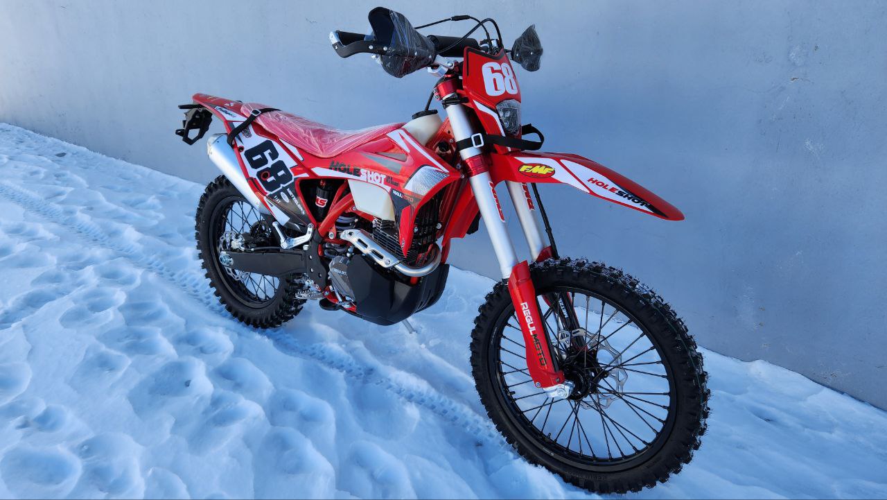 "Regulmoto Holeshot Red Edition – новинка модельного ряда мототехники Regulmoto, байк двойного назначения с достаточно мощным 4-тактным двигателем воздушного охлаждения 4 клапана, который способен проявить себя как на дорогах с покрытием (у мотоцикла есть ПТС), так и на бездорожье.